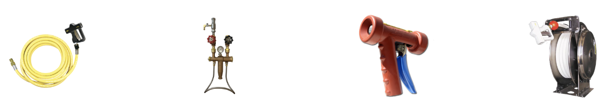 Equipos de limpieza industrial (boquillas, mezcladores, válvulas sanitarias).
